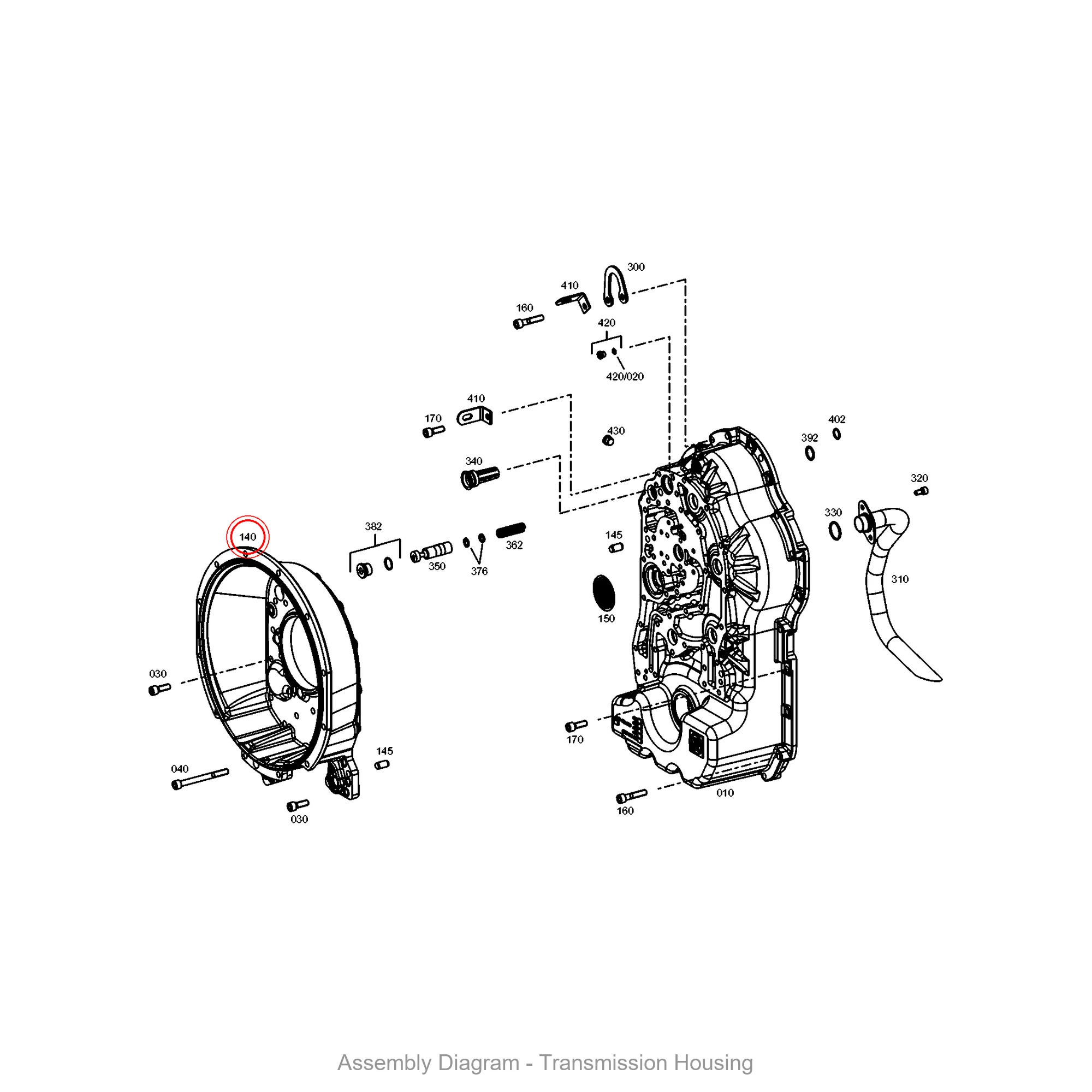 This converter bell is found in 2 ZF transmission variants, including: 4 WG 90, 4 WG 94. These transmissions are commonly used in wheel loaders, graders, and other heavy construction equipment. Contact us to verify fitment for your specific machine.