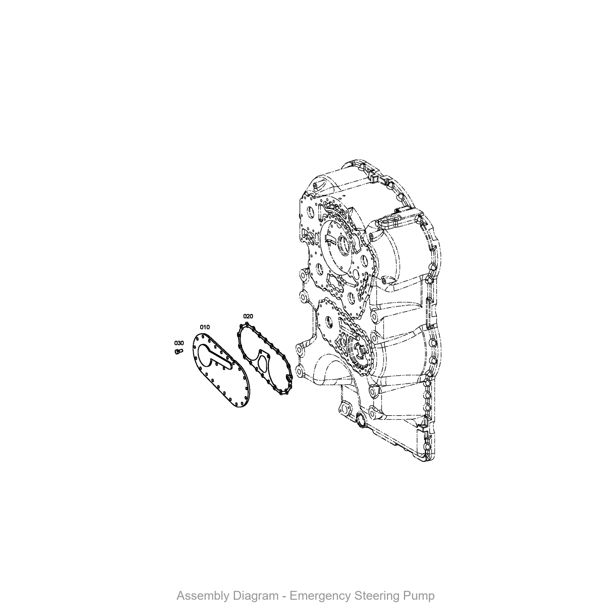 This emergency steering pump is located in the bp 210, bp 230, emergency steering pump area of the transmission. It appears in 22 different assembly configurations. In the service manual, look for position number 310 in the Bp 210 section.