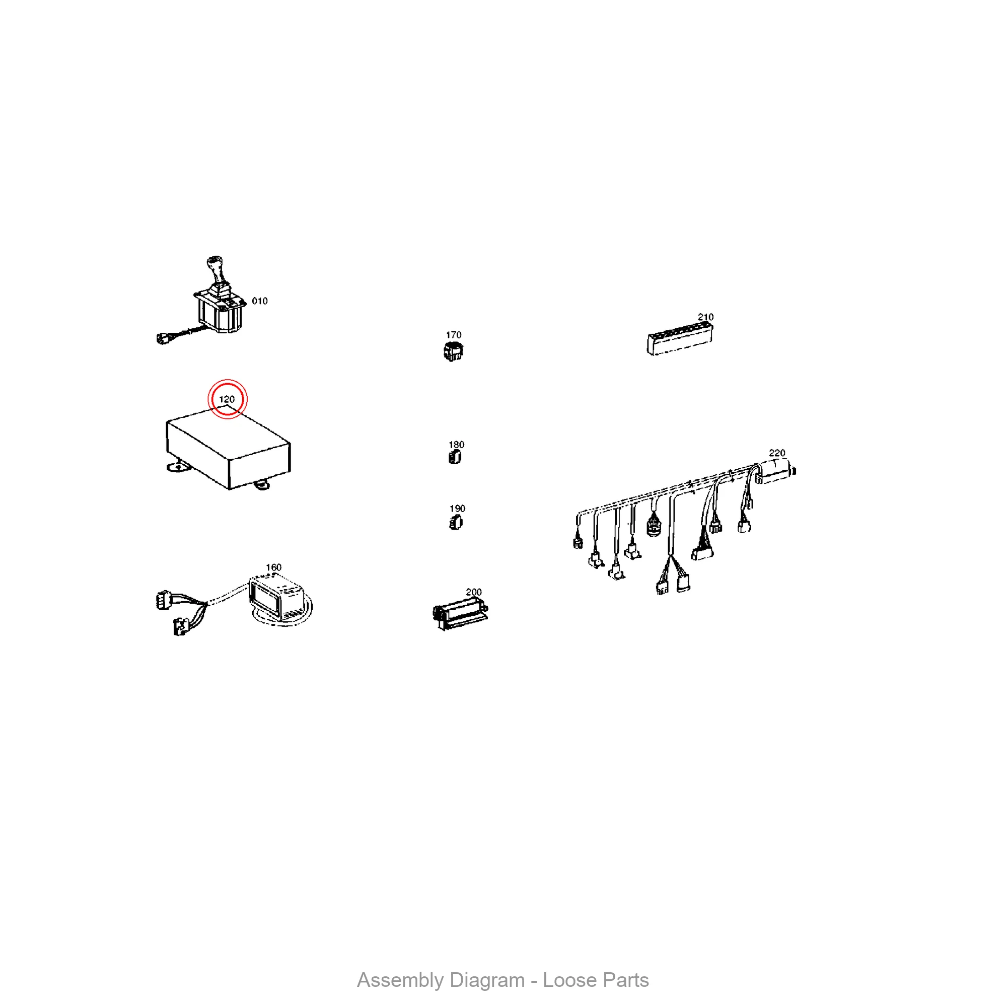 This control unit is located in the loose parts area of the transmission. It appears in 1 different assembly configurations. In the service manual, look for position number 120 in the Loose Parts section.