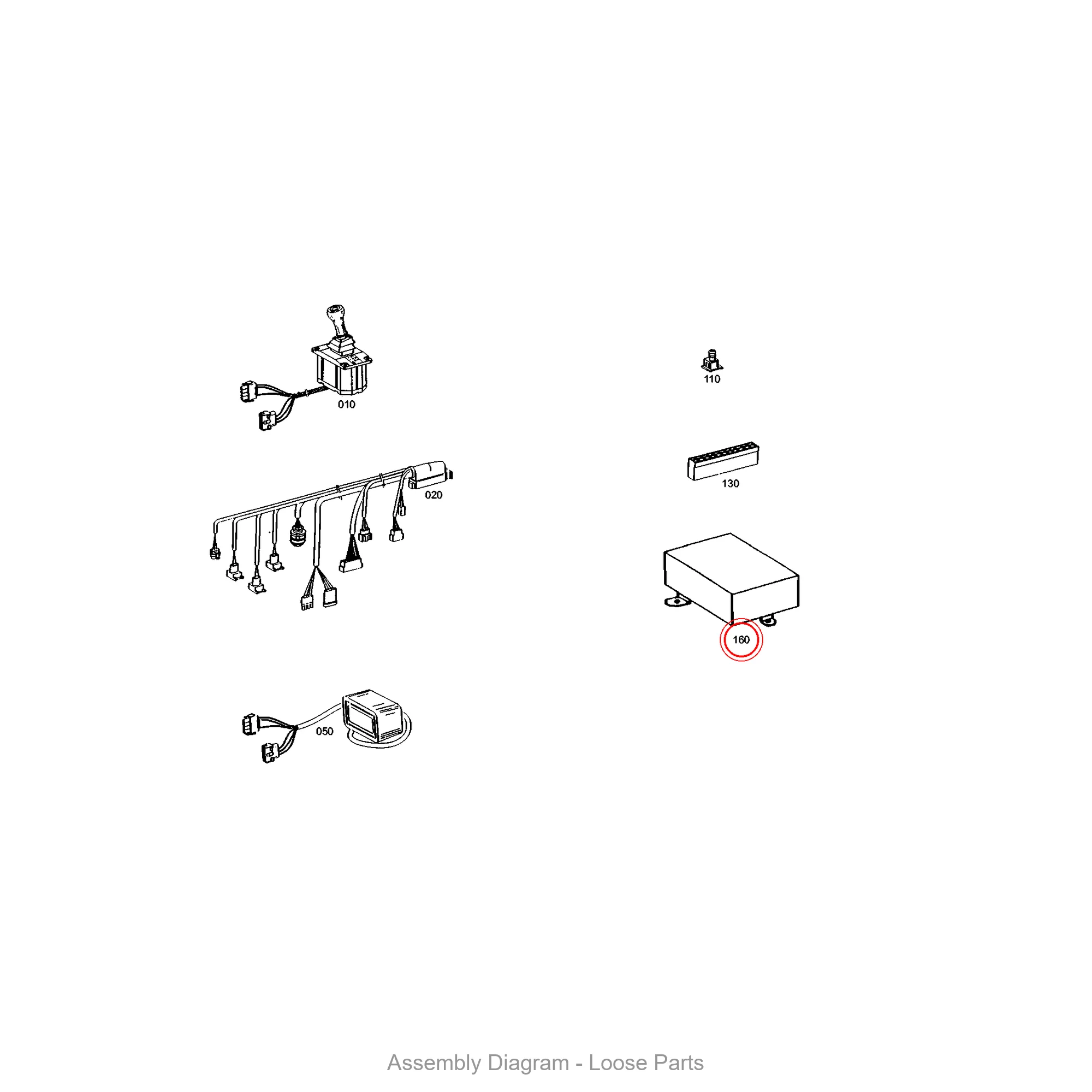 This control unit is located in the loose parts area of the transmission. It appears in 1 different assembly configurations. In the service manual, look for position number 160 in the Loose Parts section.